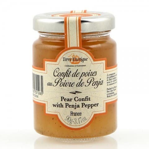 Savourez le Confit de Poires au Poivre de Penja de Maison Gaucher. Une harmonie parfaite entre la douceur des poires et les notes subtiles du poivre de Penja.