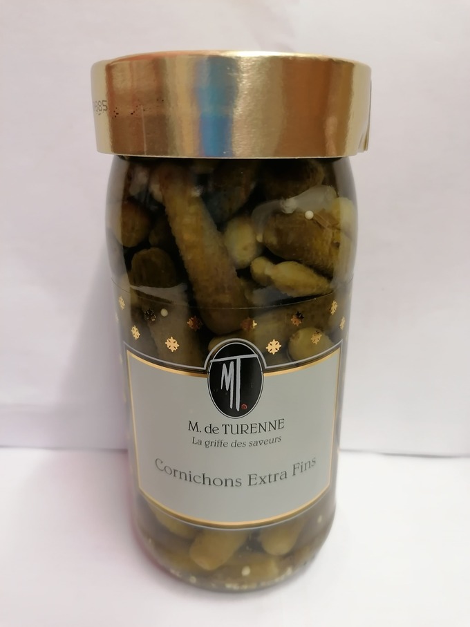 cornichons d’origine inde, oignons, aromates (graines de moutarde, estragon) vinaigre d’alcool d’origine agricole, sel, sulfites
