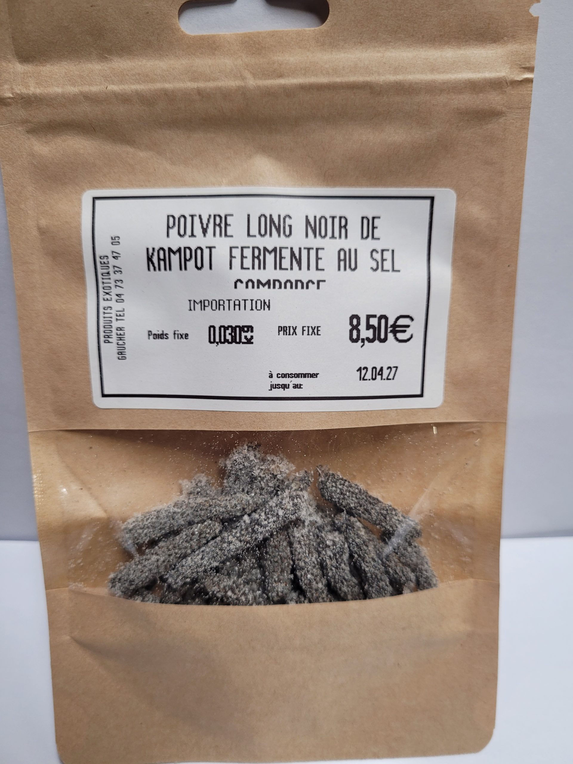 quantité de POIVRE LONG NOIR DE KAMPOT FERMENTE AU SEL 30g net CAMBODGE