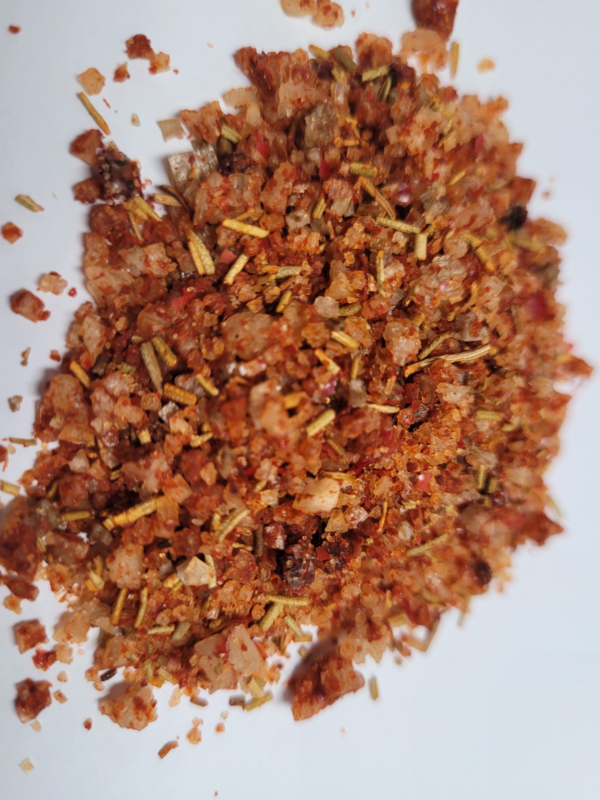 Composition : gros sel de l’ile de ré, paprika, romarin, baie rose, piment de cayenne