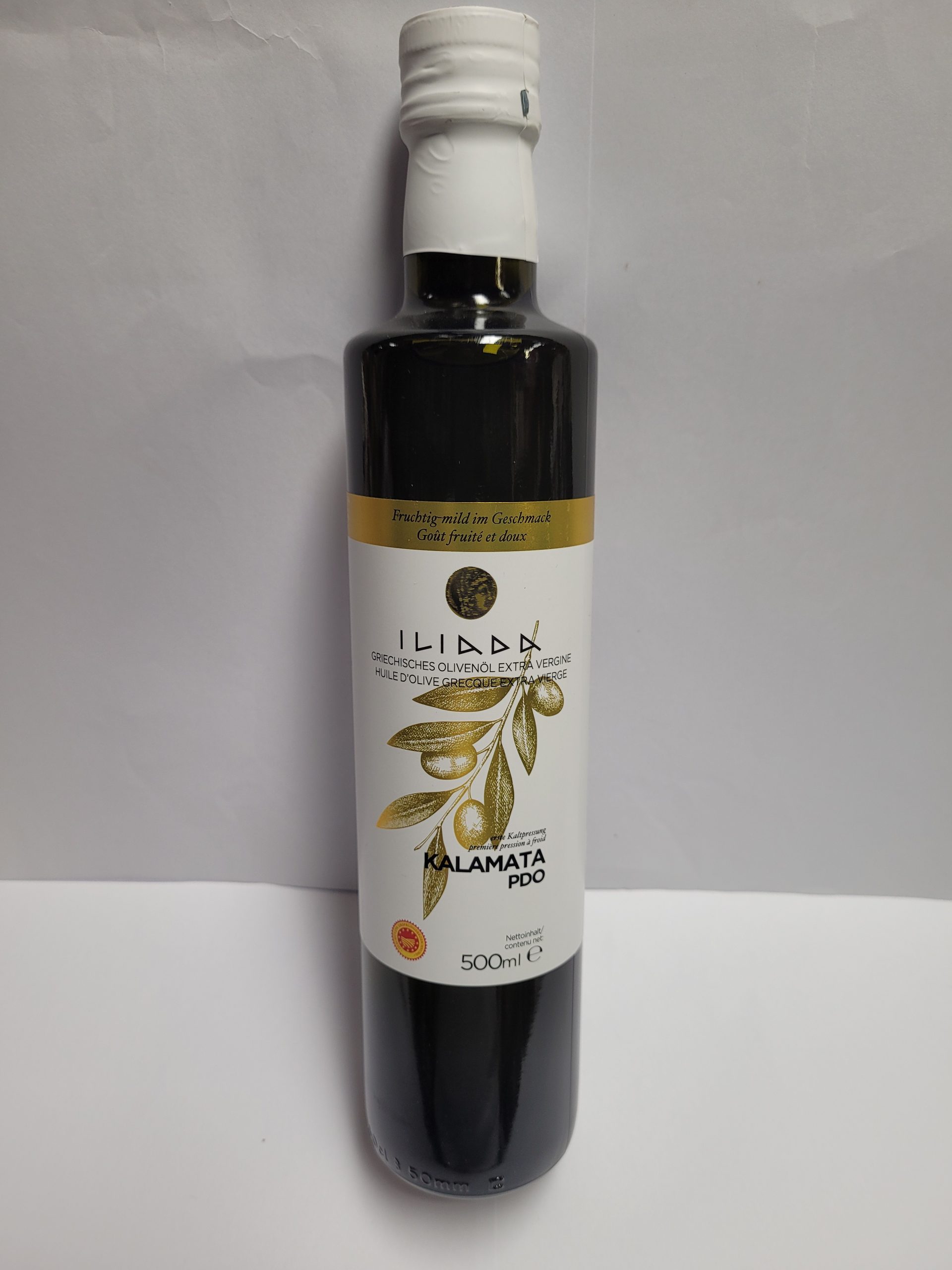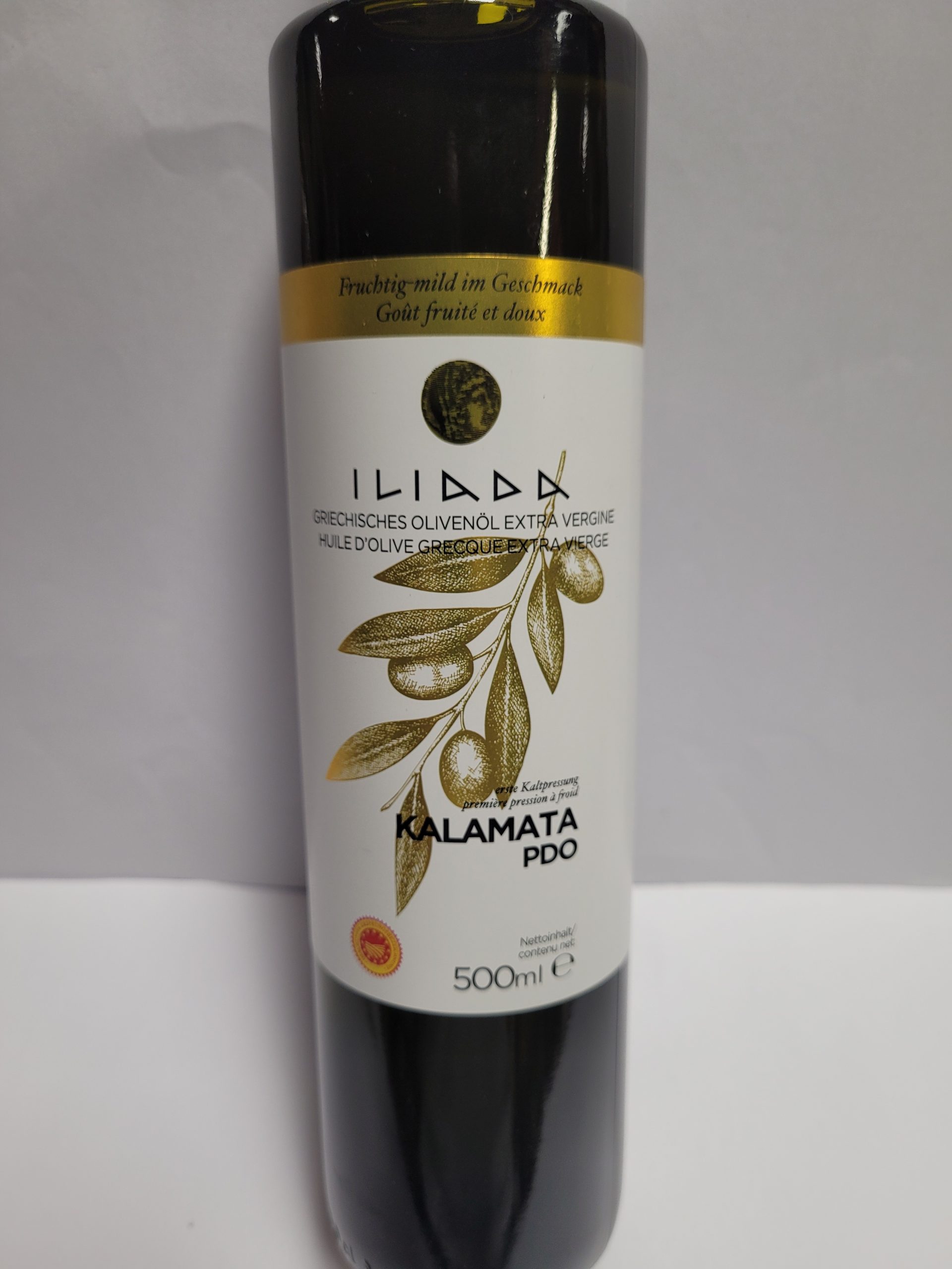 Huile d’olive extra vierge de catégorie supérieure est issue d’une première pression à froid d’olives koroneiki provenant de KALAMATA