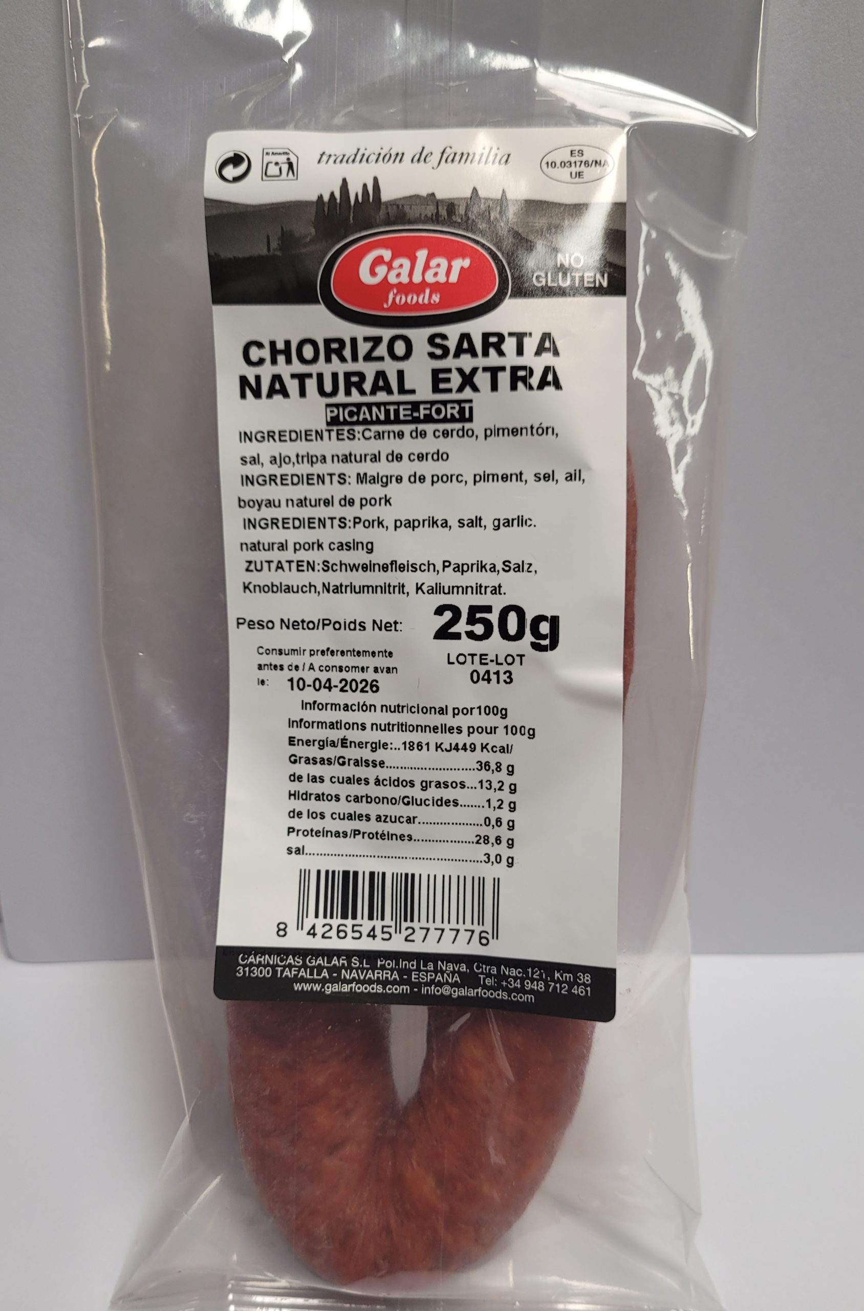 CHORIZO SARTA NATUREL EXTRA PIQUANT 250g net ESPAGNE