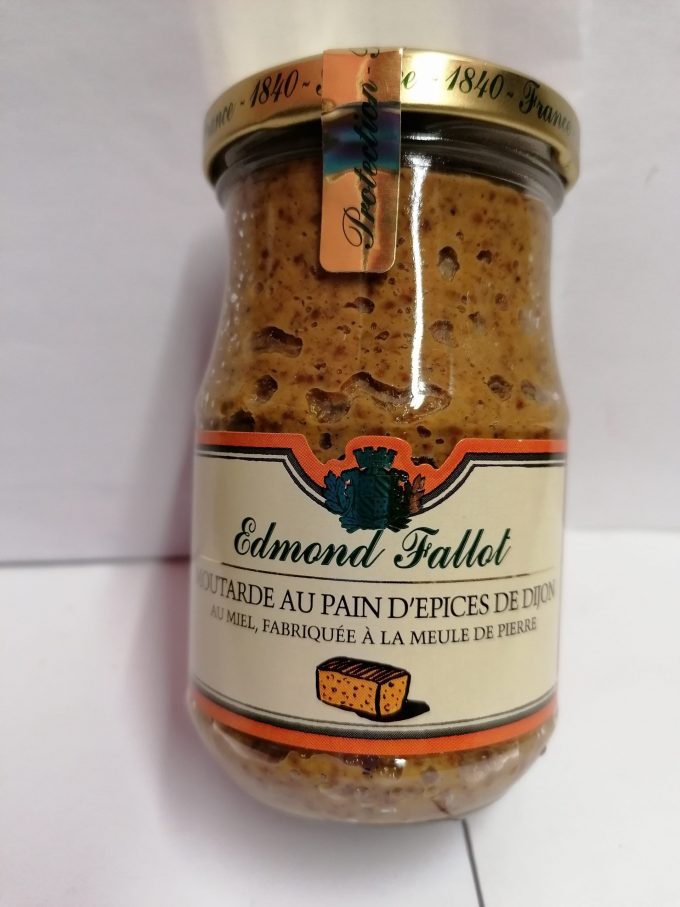 Eau, graines de moutarde, vinaigre, miel, sel, sucre, pain d’épices de Dijon, épices, arôme naturel d’anis, arôme naturel d’orange