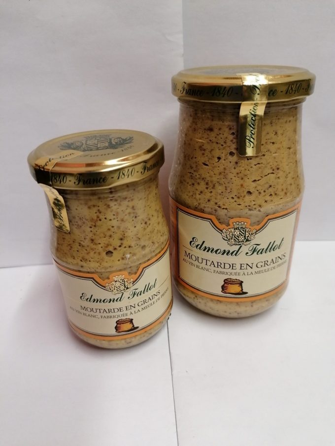 Eau, graines de moutarde, vin blanc, vinaigre, sel, téguments de moutarde, sucre, épices.