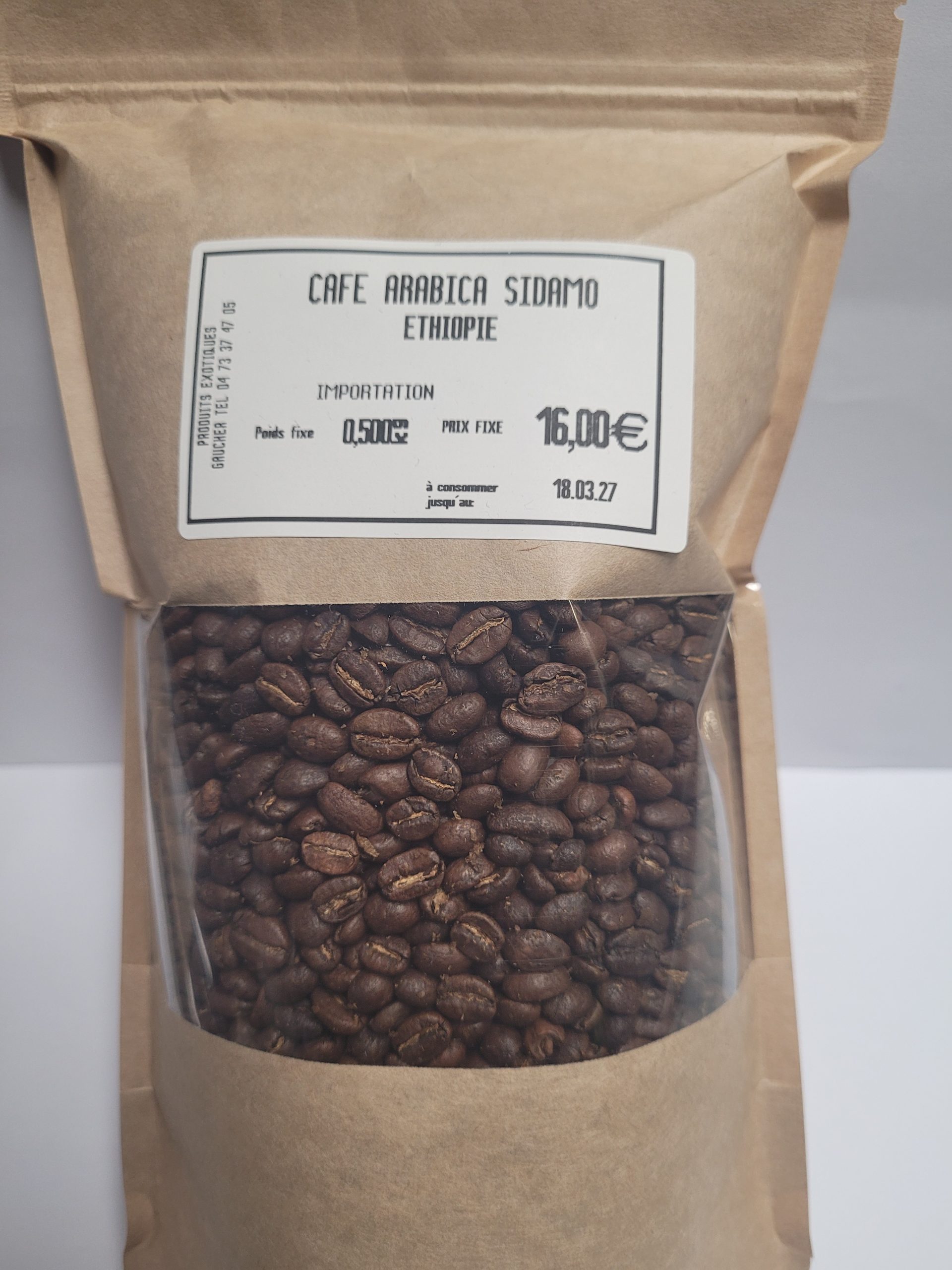 quantité de CAFÉ ARABICA SIDAMO EN GRAINS 500g net ETHIOPIE